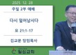 ilsim Contents 일심나눔터 공지사항 경조부 게시판 행사갤러리 새가족소개 섬김부서 유아부 유치부 유년부 초등부 학생부 청년부 남전도회 여전도회 예배설교 목사님설교 초청강사설교 특별영상 찬양 교회소개 교회비전 예배안내 섬기는이들 교회발자취 오시는길 목사님설교 목사님설교 > 예배설교 > Home 목사님설교 목록 Total 11건 1 페이지 11 영적 전쟁에서 이겨야 합니다 11 관리자 | 01-20 | (출 17:8-16) 8 그 때에 아말렉이 와서 이스라엘과 르비딤에서 싸우니라 9 모세가 여호수아에게 이르되 우리를 위하여 사람들을 택하여 나가서 아말렉과 싸우라 내일 … 10 신압의 집을 잘 지읍시다 10 관리자 | 01-06 | (고전 3:10-15) 10 내게 주신 하나님의 은혜를 따라 내가 지혜로운 건축자와 같이 터를 닦아 두매 다른 이가 그 위에 세우나 그러나 각각 어떻게 그 위에 세울까를 조심… 9 다시 일어납시다 9 관리자 | 12-30 | (요 21:1-17) 1 그 후에 예수께서 디베랴 호수에서 또 제자들에게 자기를 나타내셨으니 나타내신 일은 이러하니라 2 시몬 베드로와 디두모라 하는 도마와 갈릴리 가나… 8 왜 아멘 신앙을 가져야 하는가? 8 관리자 | 12-24 | (고후 1:19-20) 19 우리 곧 나와 실루아노와 디모데로 말미암아 너희 가운데 전파된 하나님의 아들 예수 그리스도는 예 하고 아니라 함이 되지 아니하셨으니 그에게는 예만… 7 히스기야처럼 기도의 사람이 됩시다 7 관리자 | 12-16 | (사 38:1-6) 1 그 때에 히스기야가 병들어 죽게 되니 1)아모스의 아들 선지자 이사야가 나아가 그에게 이르되 여호와께서 이같이 말씀하시기를 너는 네 집에 유언하라 네가… 6 더 이상 흔들리지 맙시다 6 관리자 | 12-09 | (시 16:1-8) 1 하나님이여 나를 지켜 주소서 내가 주께 피하나이다 2 내가 여호와께 아뢰되 주는 나의 주님이시오니 주 밖에는 나의 복이 없다 하였나이다 3 … 5 다 주 예수의 이름으로 하라 5 관리자 | 11-25 | (골 3:17) 17 또 무엇을 하든지 말에나 일에나 다 주 예수의 이름으로 하고 그를 힘입어 하나님 아버지께 감사하라 4 주님 때문에 감사함을 넘치게 합시다 4 관리자 | 11-19 | (골 2:6-7) 6 그러므로 너희가 그리스도 예수를 주로 받았으니 그 안에서 행하되 7 그 안에 뿌리를 박으며 세움을 받아 교훈을 받은 대로 믿음에 굳게 서서 감사함을… 3 지금도 하나님 말씀에는 능력이 있다 3 관리자 | 11-11 | (렘 23:29) 29 여호와의 말씀이니라 내 말이 불 같지 아니하냐 바위를 쳐서 부스러뜨리는 방망이 같지 아니하냐 2 하나님을 가까이 합시다 2 관리자 | 11-04 | (시 73:27-28) 27 무릇 주를 멀리하는 자는 망하리니 음녀 같이 주를 떠난 자를 주께서 다 멸하셨나이다 28 하나님께 가까이 함이 내게 복이라 내가 주 여호와를… 열린1페이지 2페이지 맨끝 게시물 검색 검색대상 제목 내용 제목+내용 회원아이디 회원아이디(코) 글쓴이 글쓴이(코) 검색어 필수
